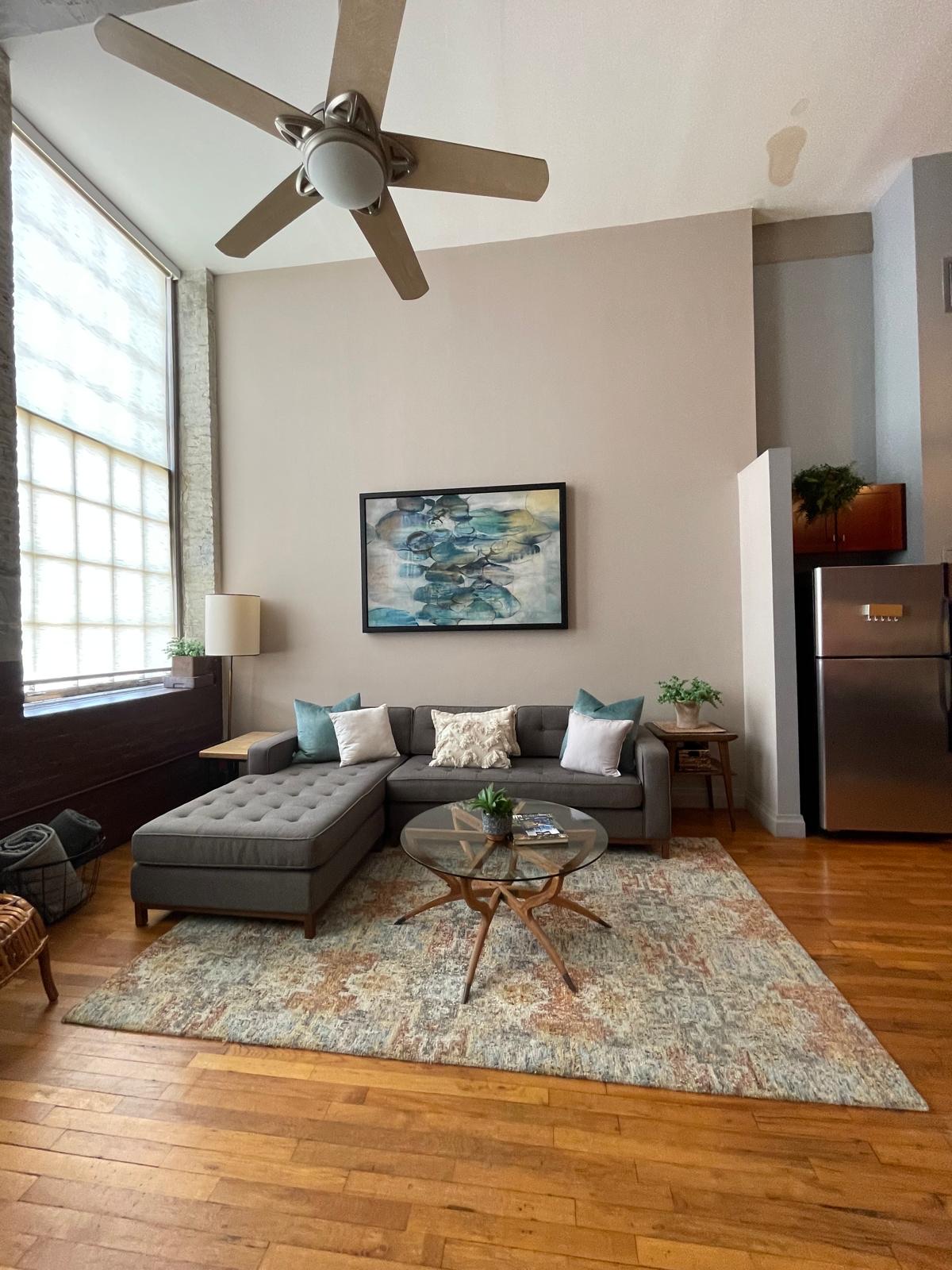 This BEAUTIFUL fully furnished Cotton Mill condo in the heart of Warehouse District has ONE bed/ONE bath. w/ walk-in closets. It boasts expansive ceilings, exposed brick, wood flooring, and massive windows.